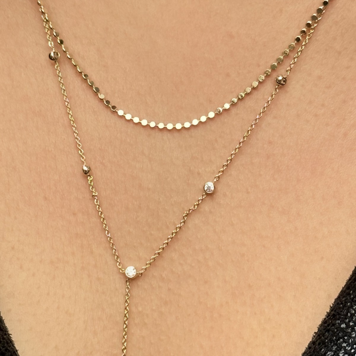 Çift Katlı Taşlı Kolye – Gold