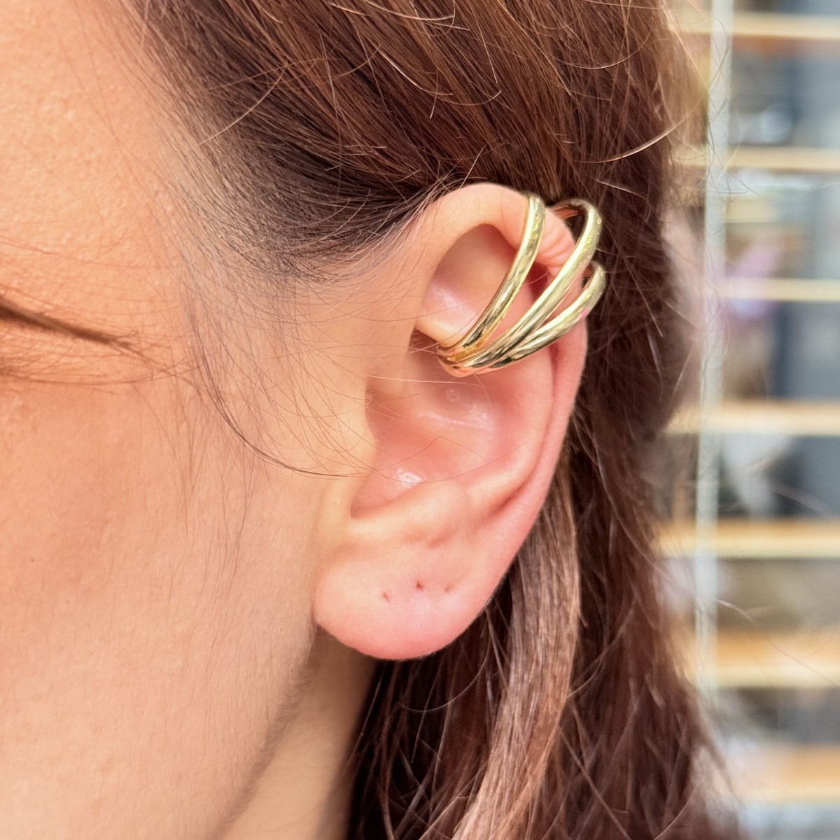 Üç Halkalı Kıkırdak Küpe (Altın)