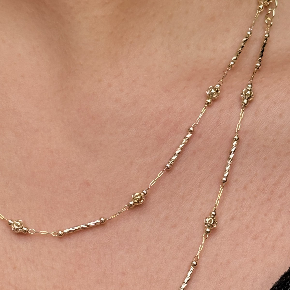 Aynı zarif dokuyu daha uzun formda taşıyarak katmanlı kullanımlar için mükemmel bir tamamlayıcı. İster uzun ,isterseniz de iki dolamalı kullanabilirsiniz.
