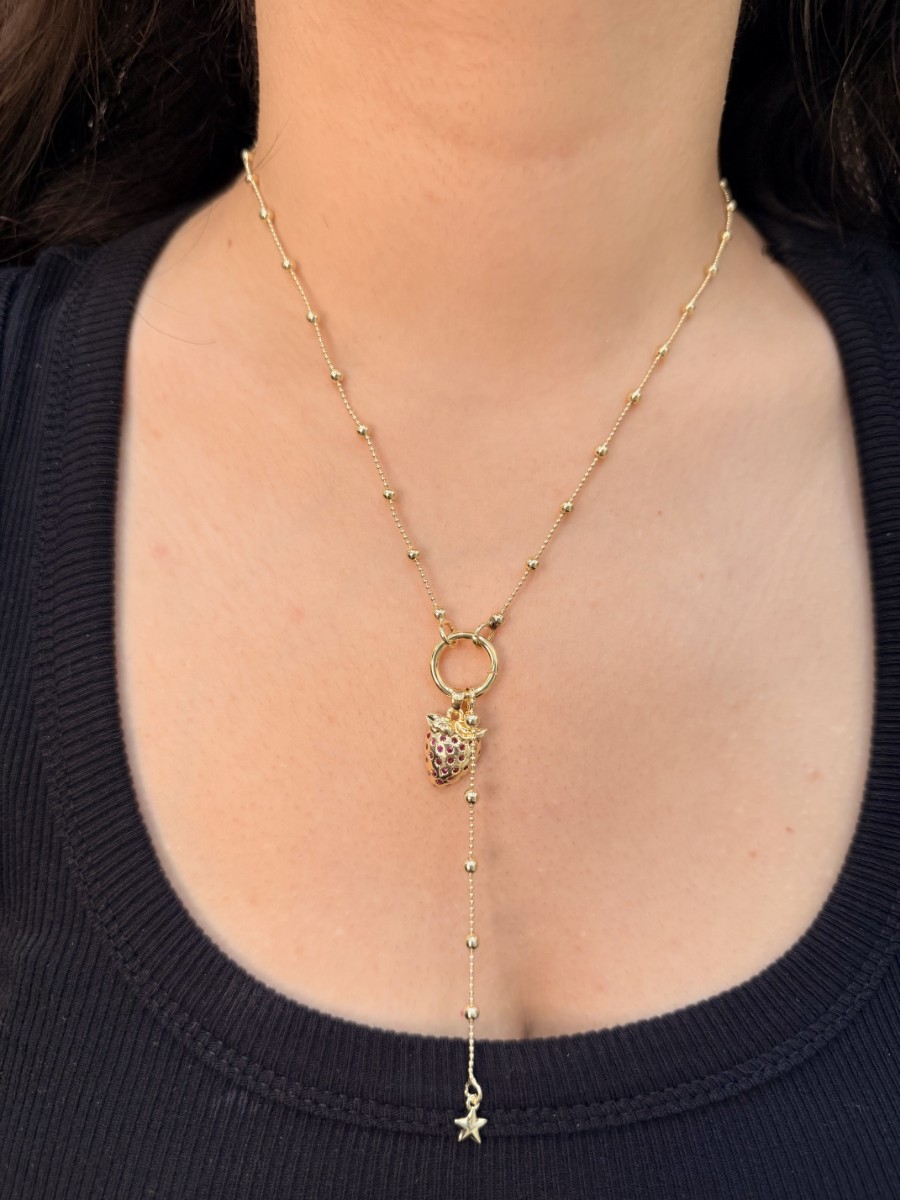 Altın renkli çilek detaylarla tamamlanan sade ama zarif bir model. Günlük şıklık için ideal.