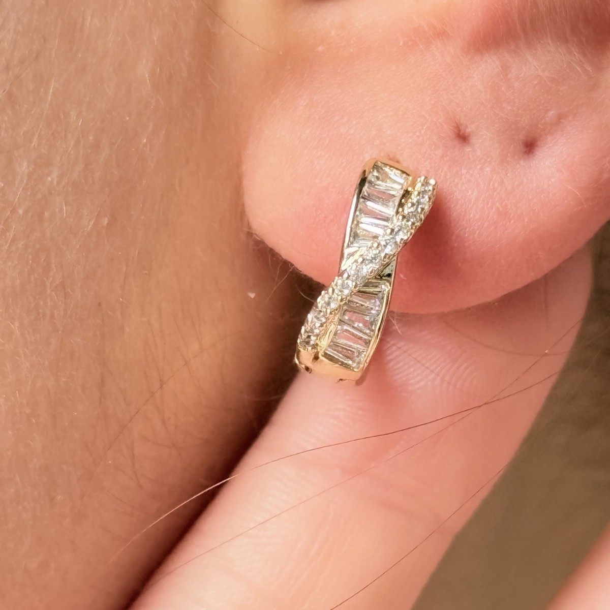 Baget taşlarla bezenmiş, sarmal formda ışıltılı tasarım.