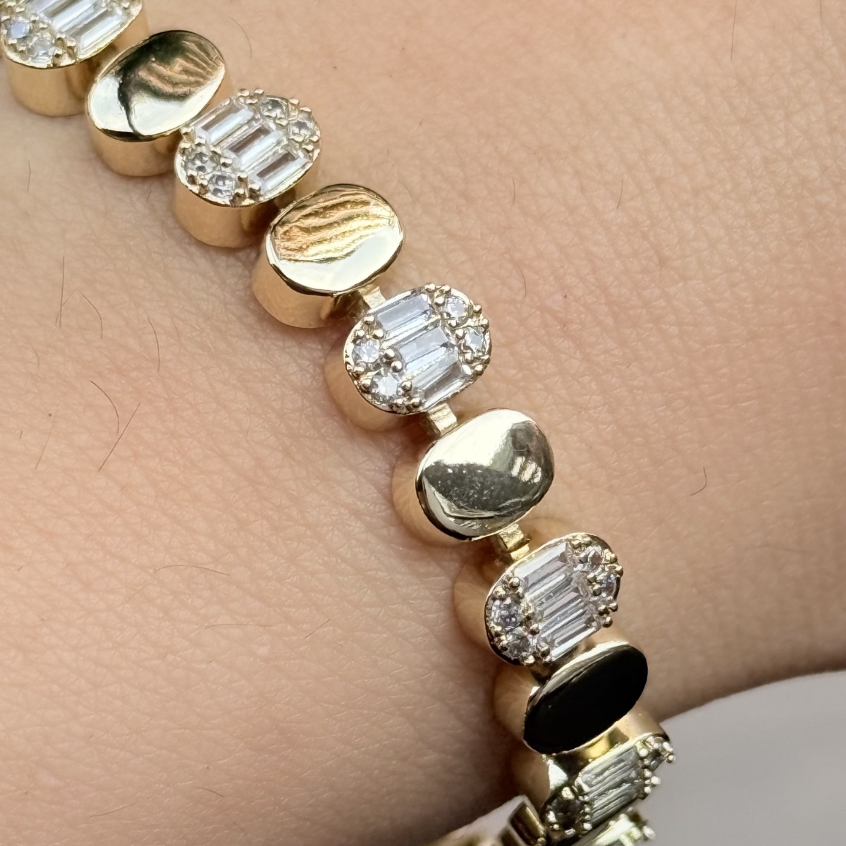 Baget ve oval taş kombinasyonlu zarif bileklik.
