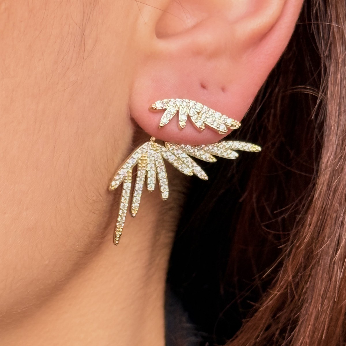 Kapsül formunda iki kat halkalı sallantı; parlak metal yüzeyleri çevreleyen mikro taş sıraları.