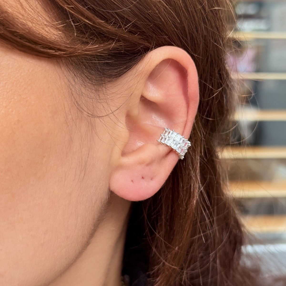 Parlak kesim taşlarıyla kulağa zarif bir ışıltı kazandıran, klipsli kıkırdak küpe modeli.