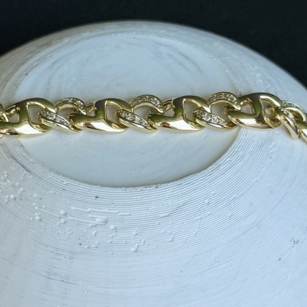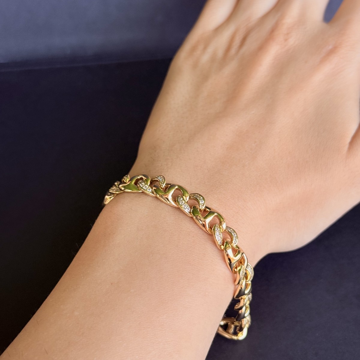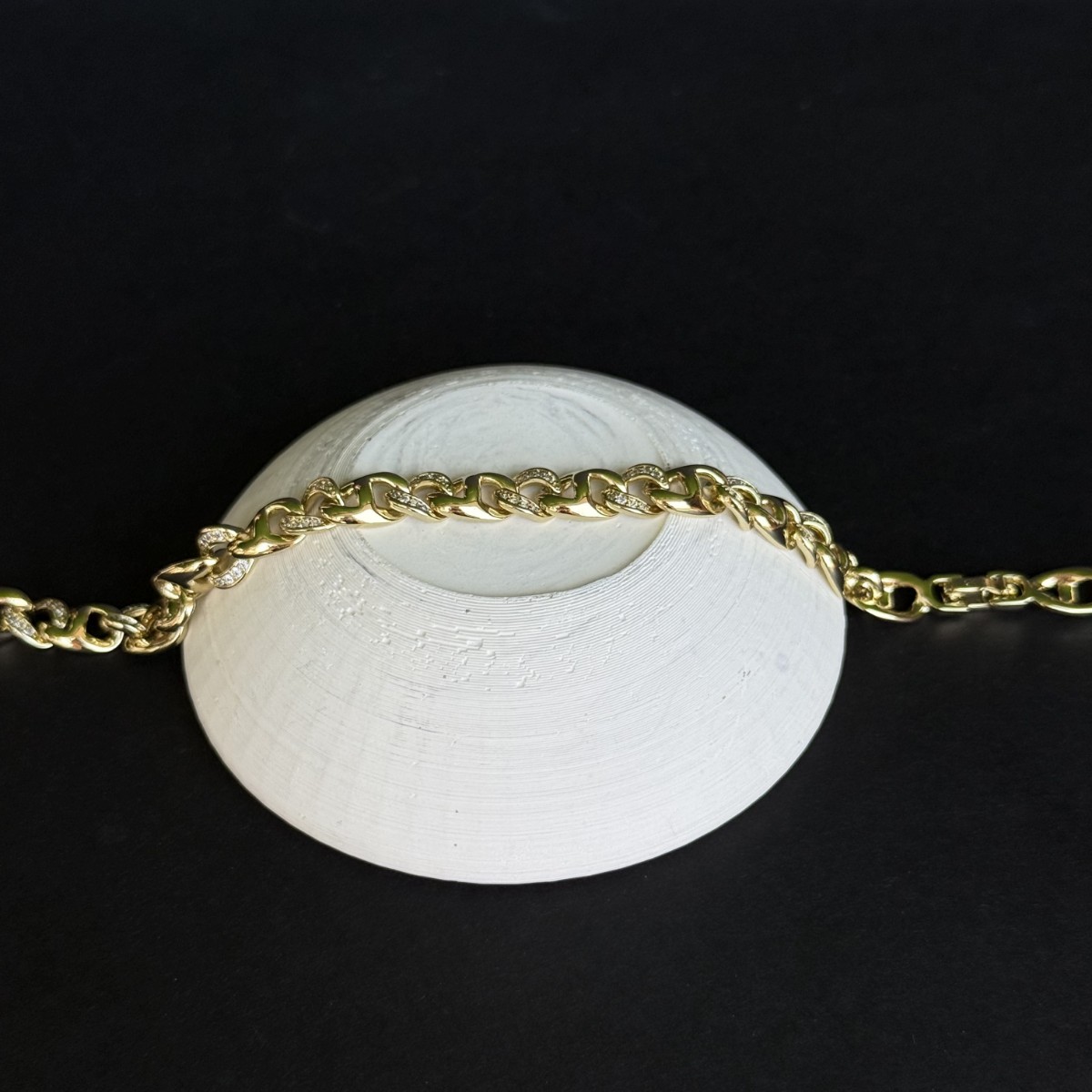 Klasik oval halkalarla hazırlanmış, her bir halkanın iç kısmı taşlarla işlenmiş. Günlük kullanıma uygun şık bir model.