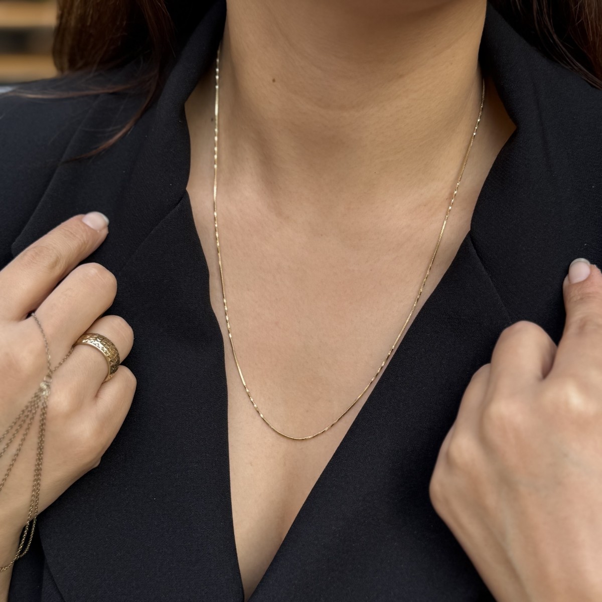 Mikro boncuklar arasına yerleştirilmiş minik silindir detaylarla şık duruş.