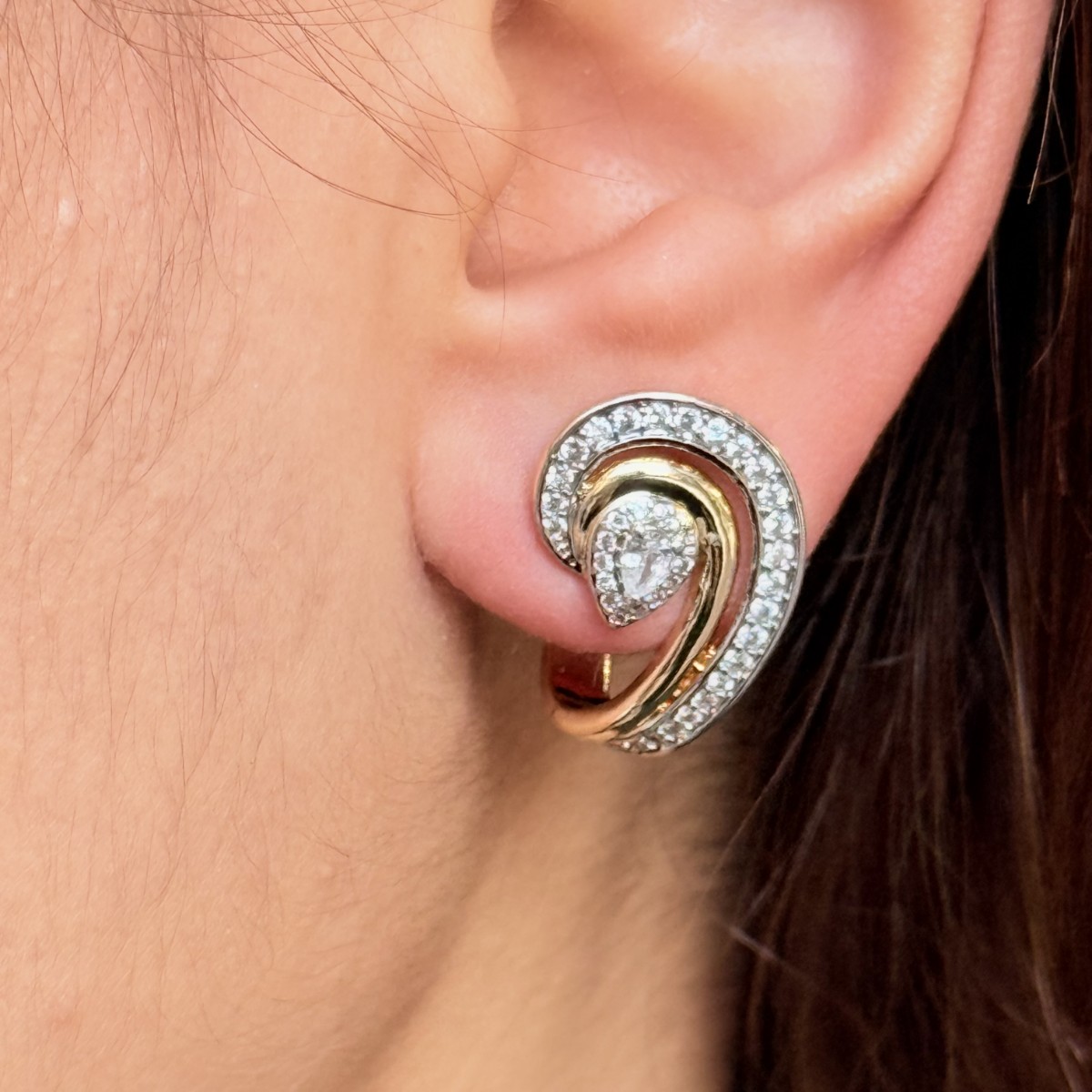 Çift yıldız patlaması görünümünde ear-jacket; üstte mini nova, altta büyük yıldız ve uçlarda taşlı kollar.