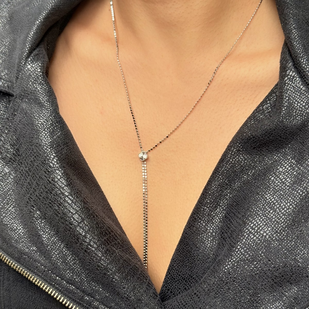 Tek Taşlı Uzun Zincir Kolye – Gümüş