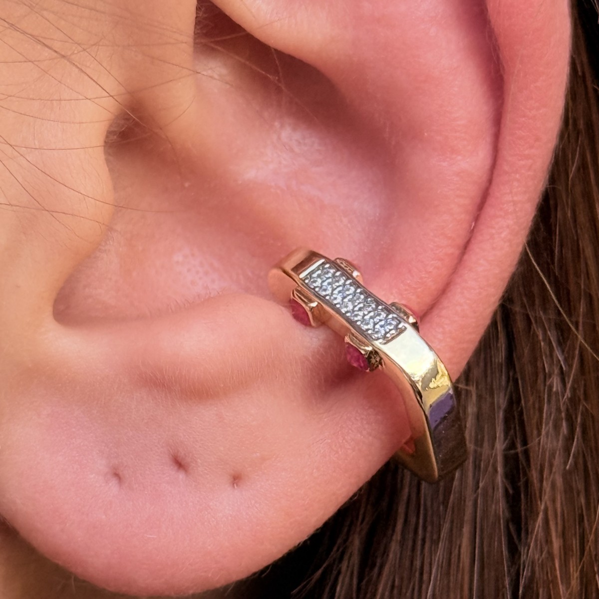 Zincir‑sivri detaylı iki renk kıkırdak cuff.