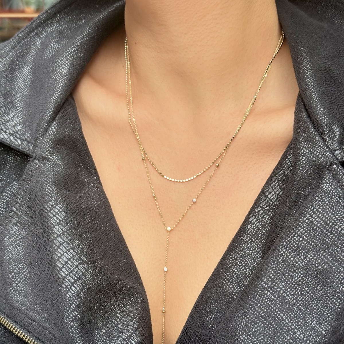 Çift Katlı Taşlı Kolye – Gold