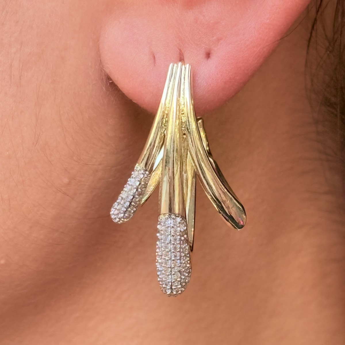 Birbirine akan kollar ve taşlı uçlarla dinamik bir form.