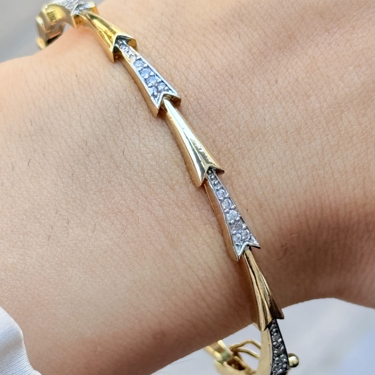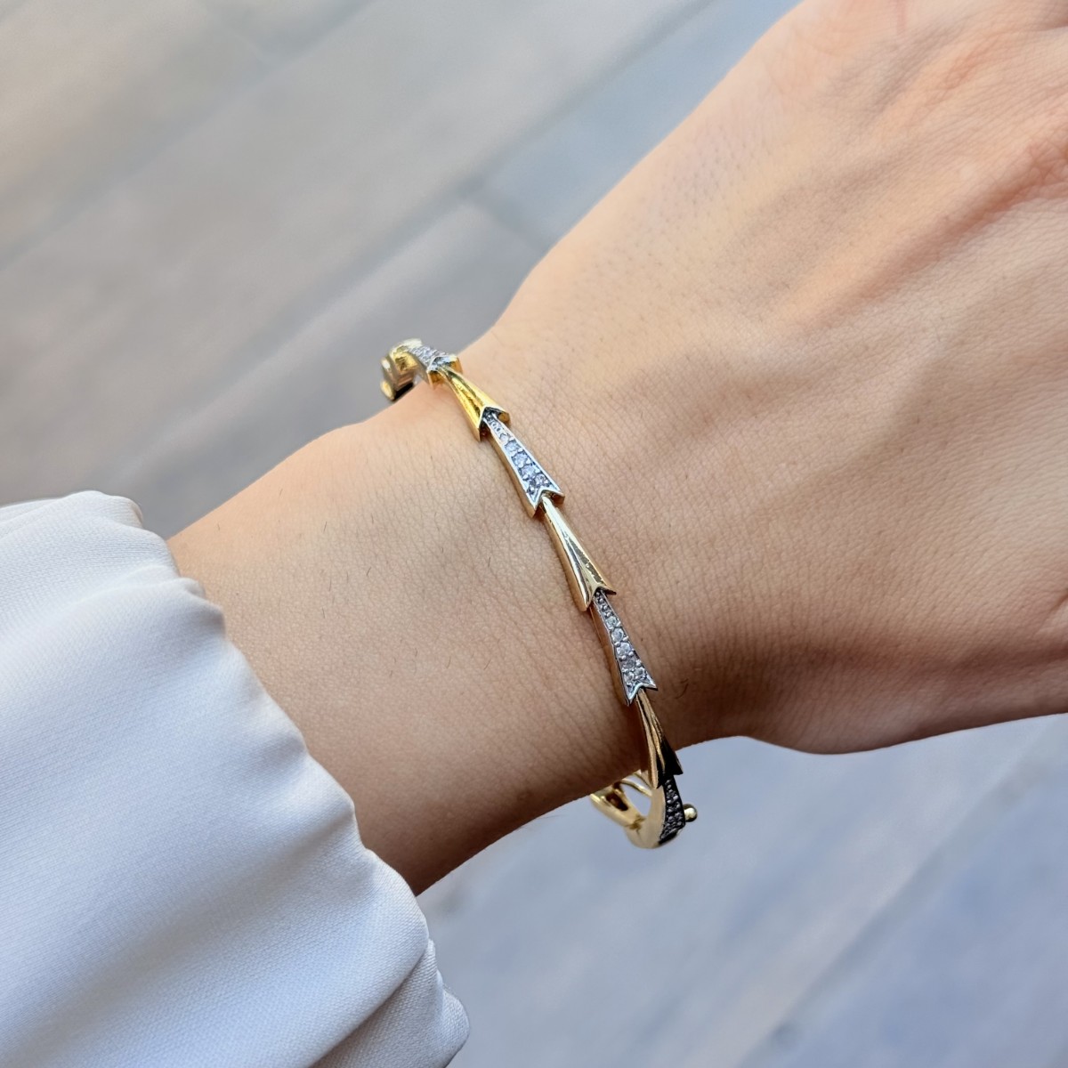 Altın ve gümüş uyumuyla cesur ve modern bir görünüm.