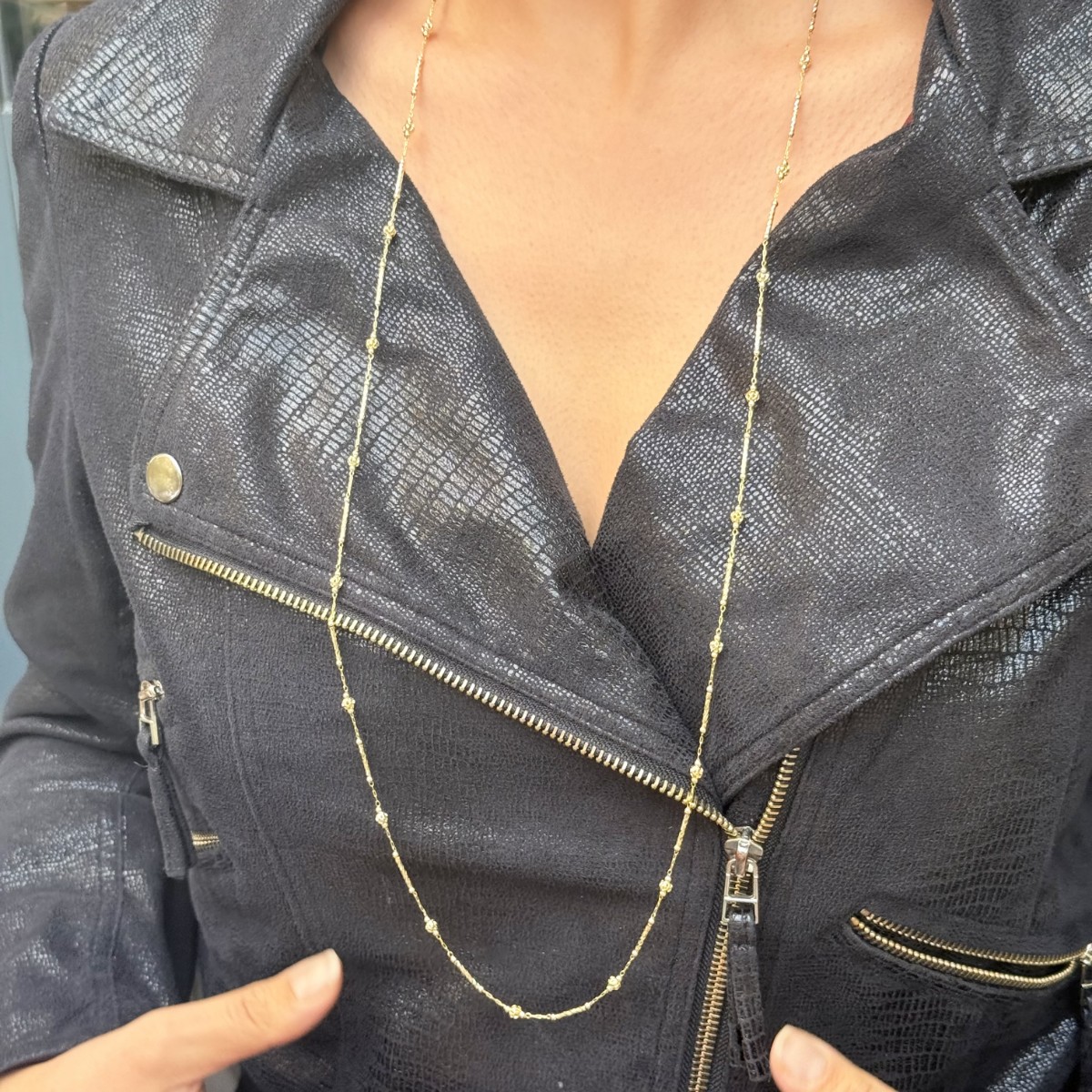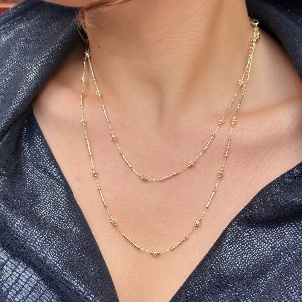 Aynı zarif dokuyu daha uzun formda taşıyarak katmanlı kullanımlar için mükemmel bir tamamlayıcı. İster uzun ,isterseniz de iki dolamalı kullanabilirsiniz.