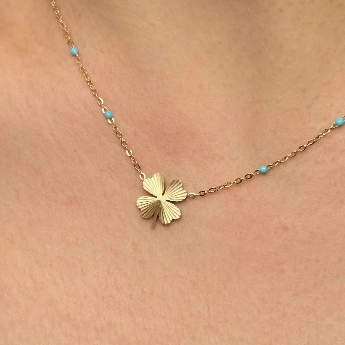🍀 Dört Yapraklı Turkuaz Kolye