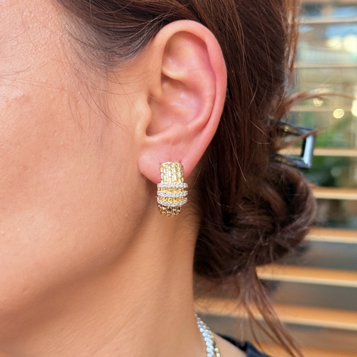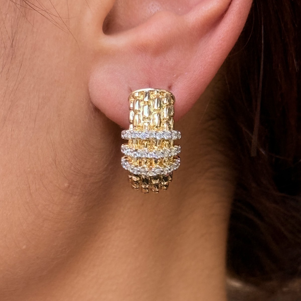 Altın örgü dokusu ve taş sıralarıyla lüks bir kontrast sunan bu tasarım, klasikle modernin buluşma noktası.