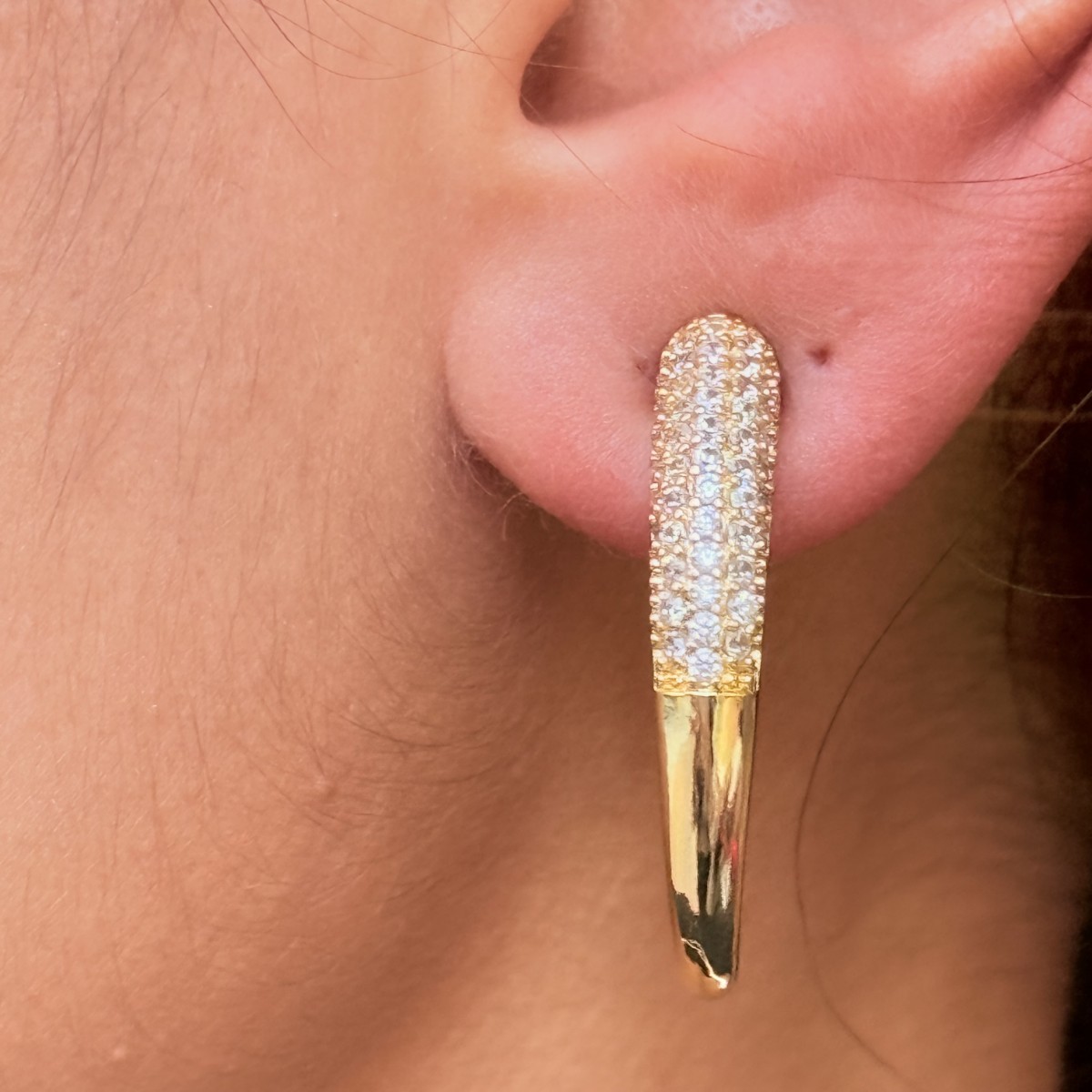 Üstte yoğun taş işlemeli, altın uç detayıyla zarif geçiş sunan tasarım.