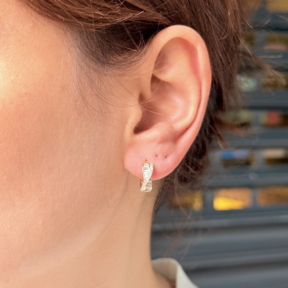 Baget taşlarla bezenmiş, sarmal formda ışıltılı tasarım.