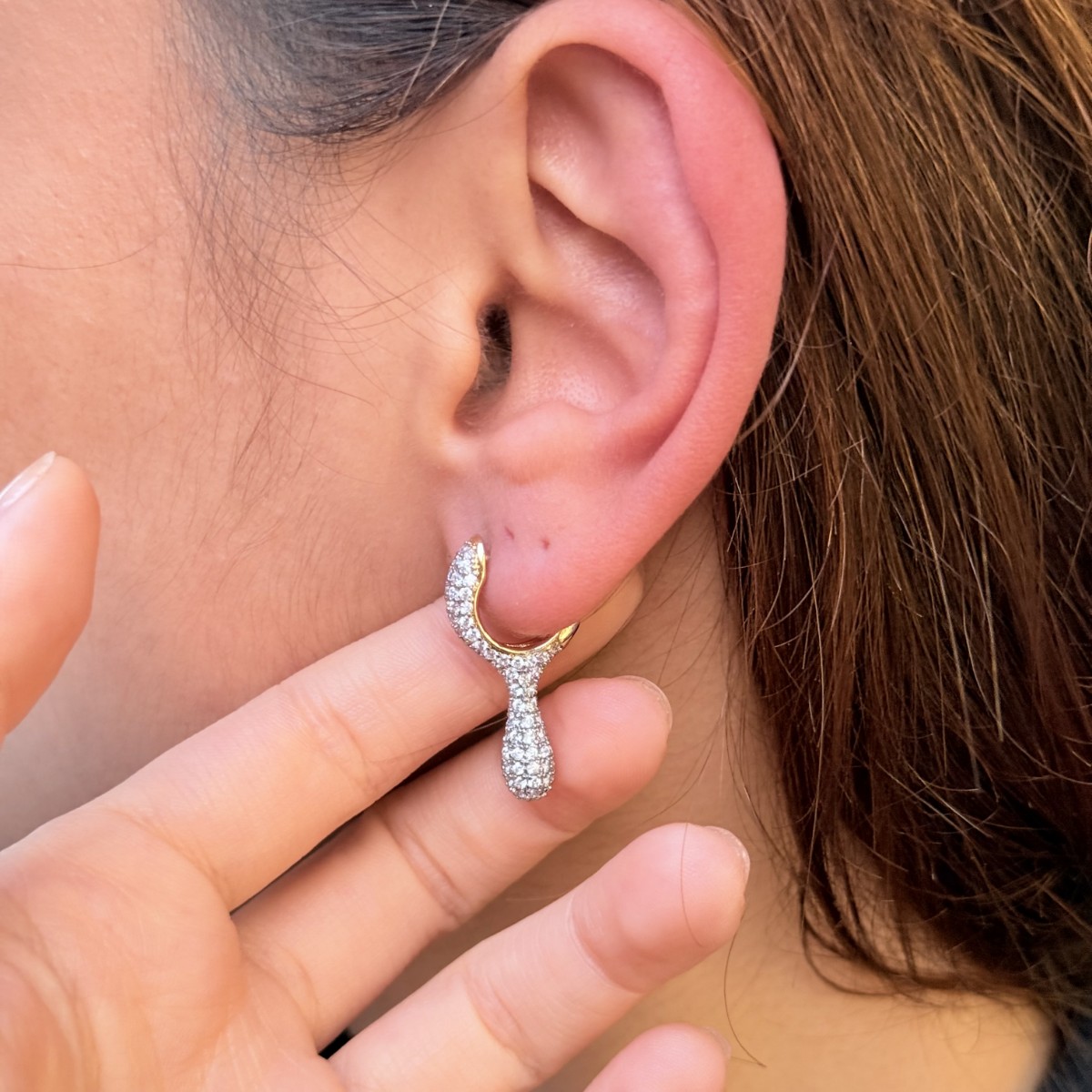 S-eğrisi damla siluet; mikro taşlarla zarif akış.