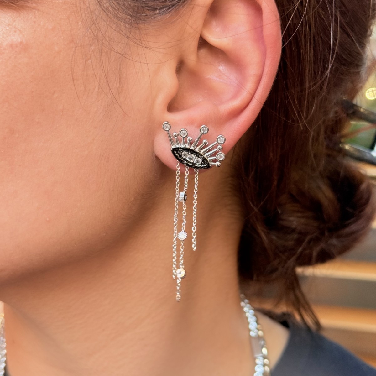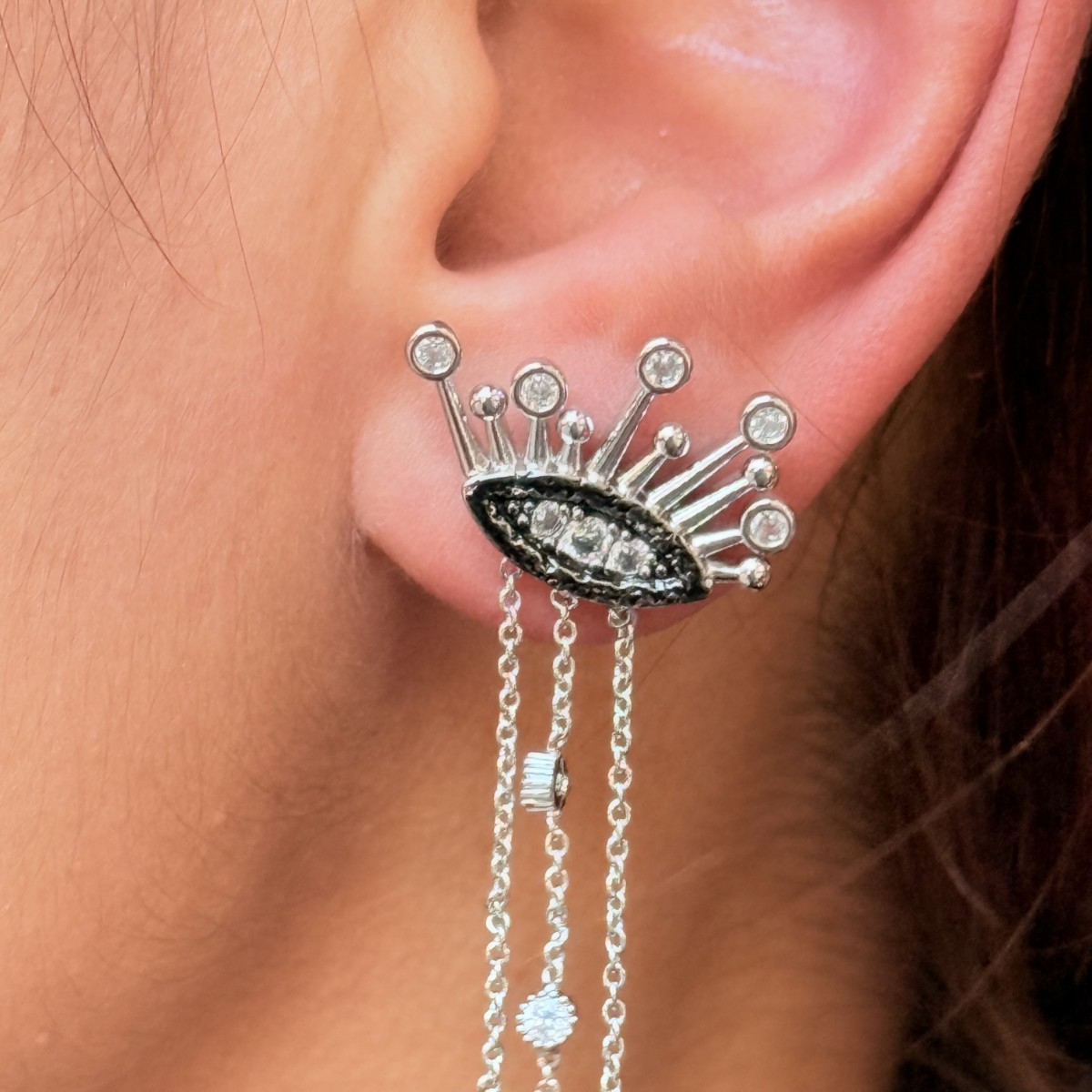 Göz formundaki merkez tasarım ve sarkan zincirler, mistik ve enerjik bir hava yaratıyor. Detaylardaki taşlarla ışığı her açıdan yakalayın.