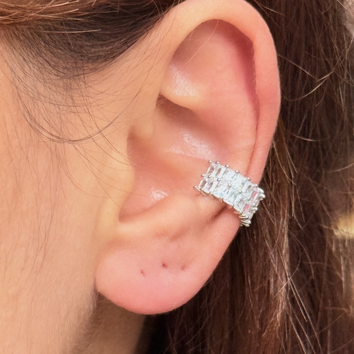 Gümüş Dikdörtgen Taşlı Kıkırdak Küpe