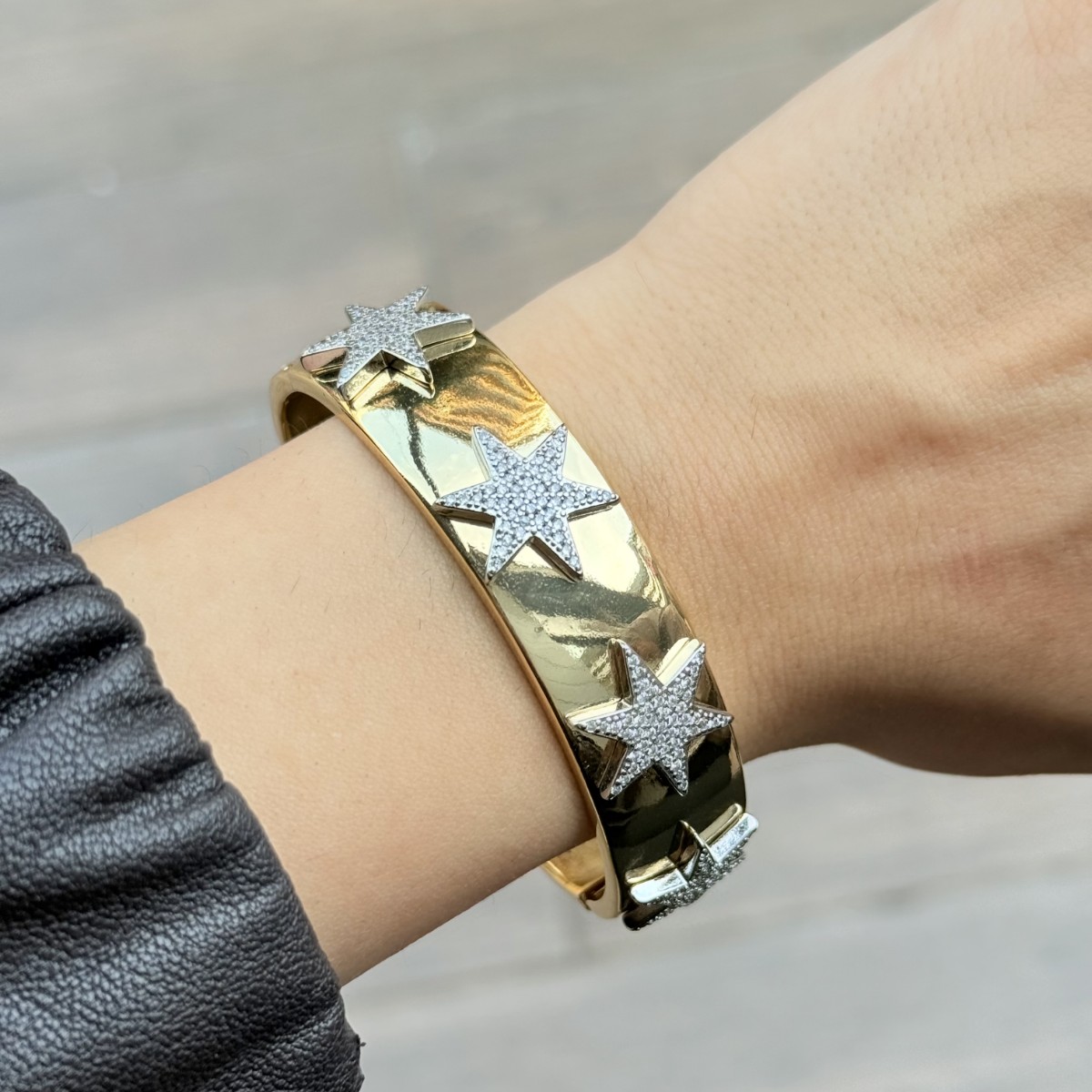Geniş manşet formunda, üç yıldız aplikeli gösterişli tasarım.