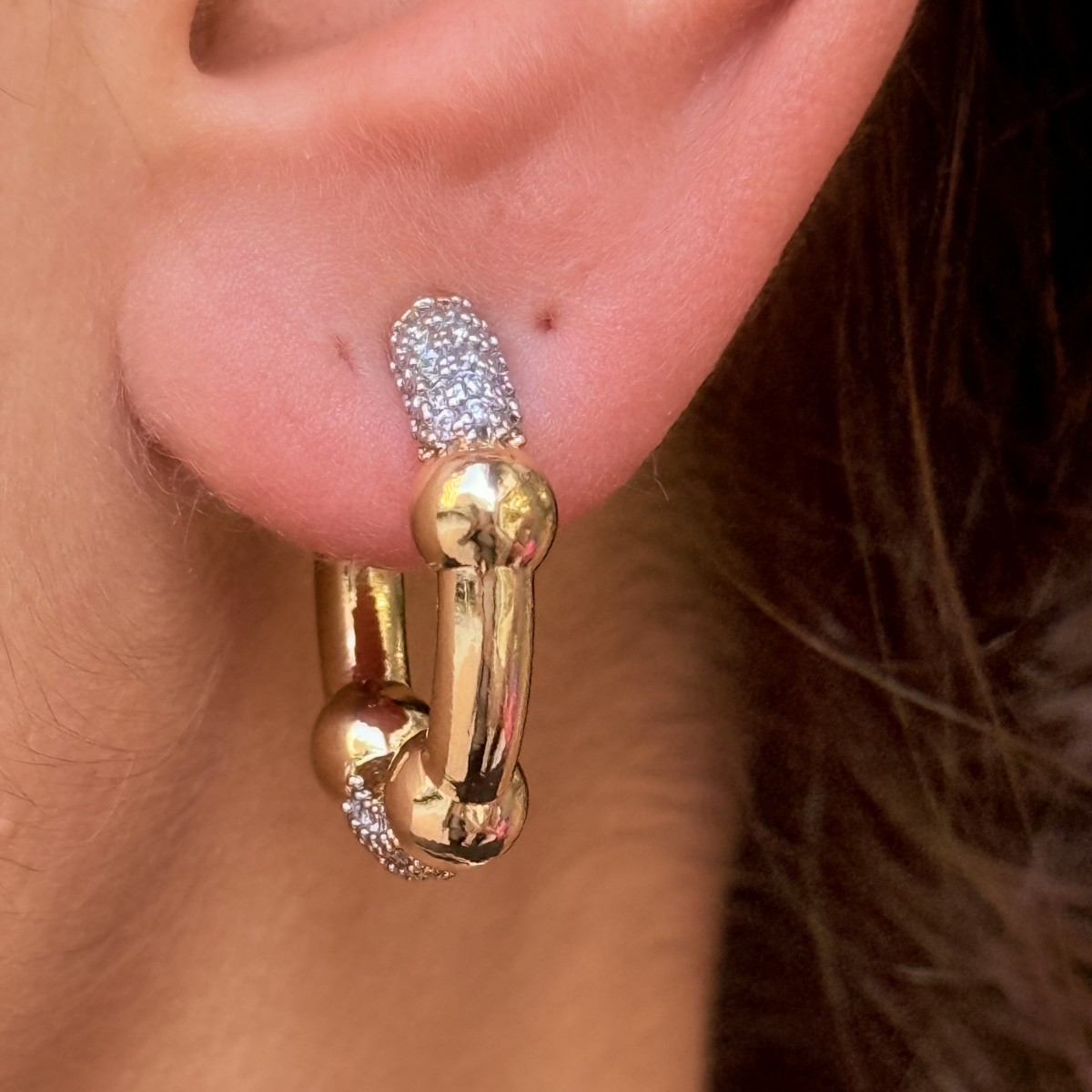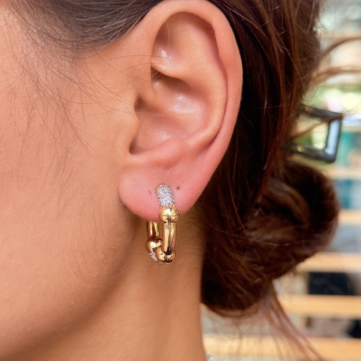 İki tonlu, taşlı ve bombeli formda modern halka tasarımı.
