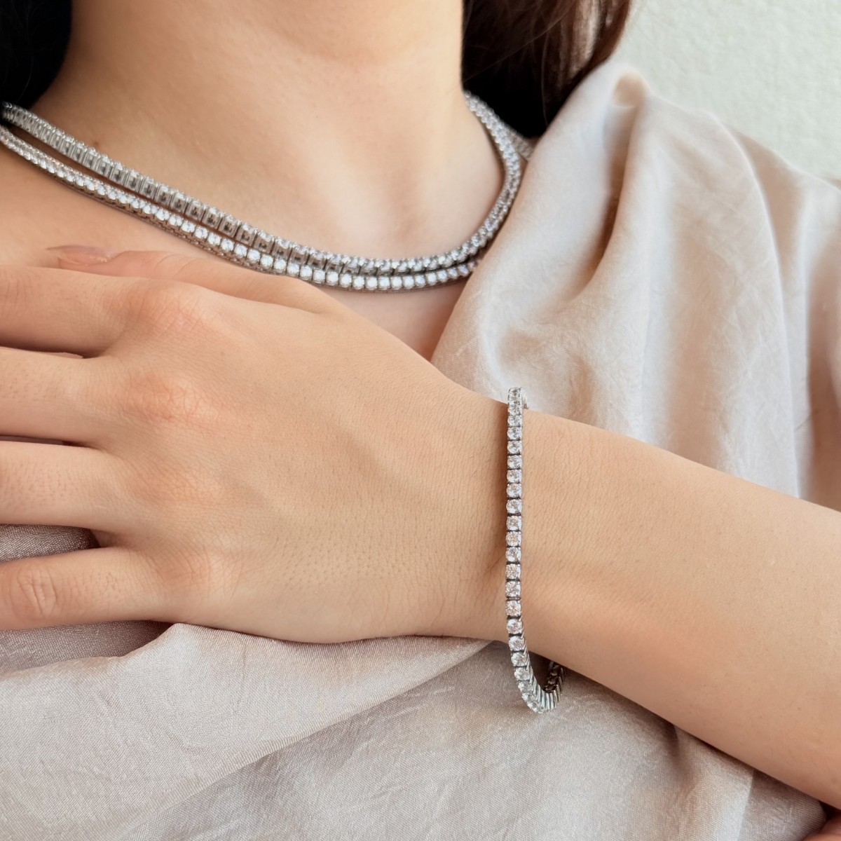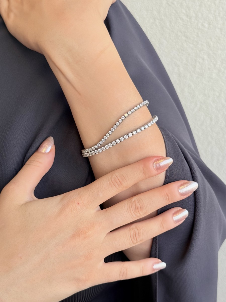 Zarif formuyla bileğe daha yakın oturan bu model, ince yapısıyla günlük kullanımda rahatlık sunar. Sıra taşlı tasarım parlaklığını korurken, küçük ölçüsü sayesinde daha minimal bir görünüm sağlar.