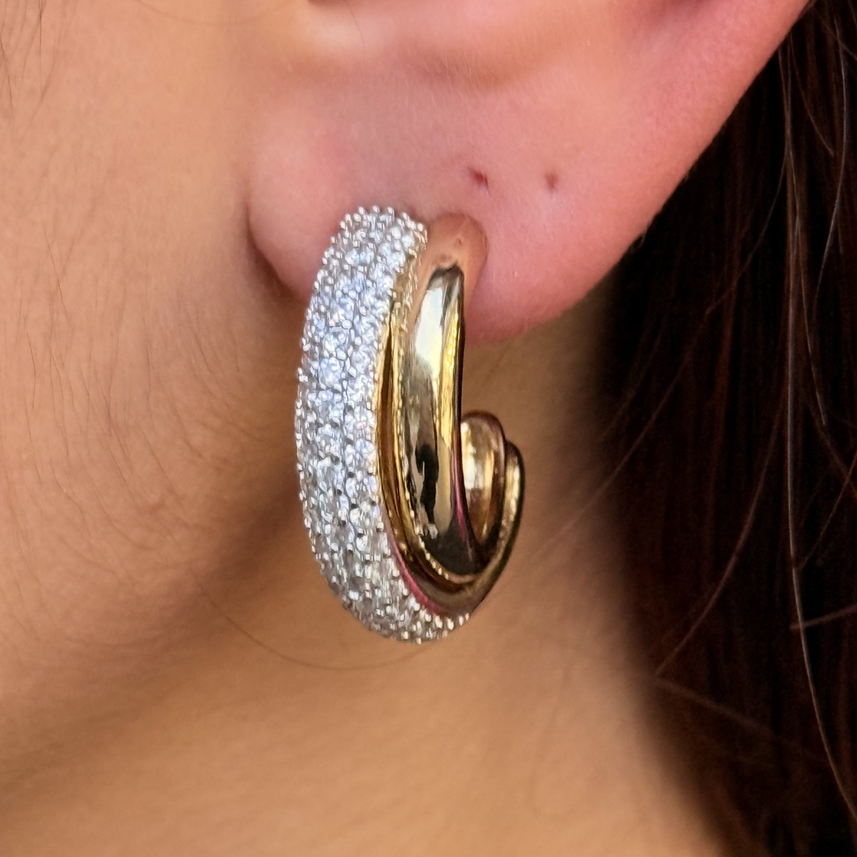 Kıvrımlı Pavé Halka Küpe – Gold İki Renk