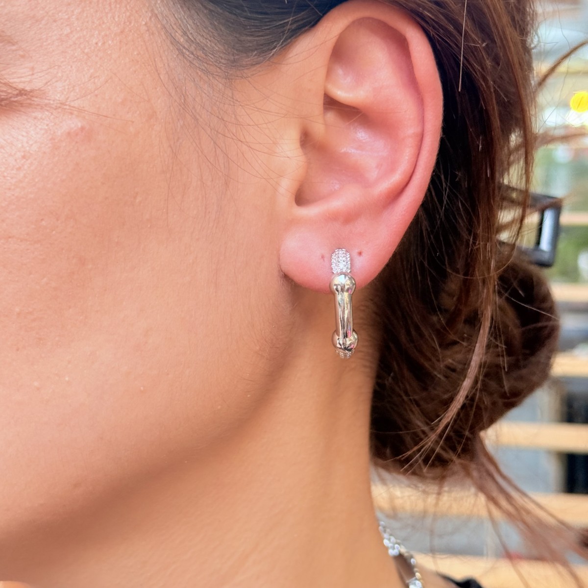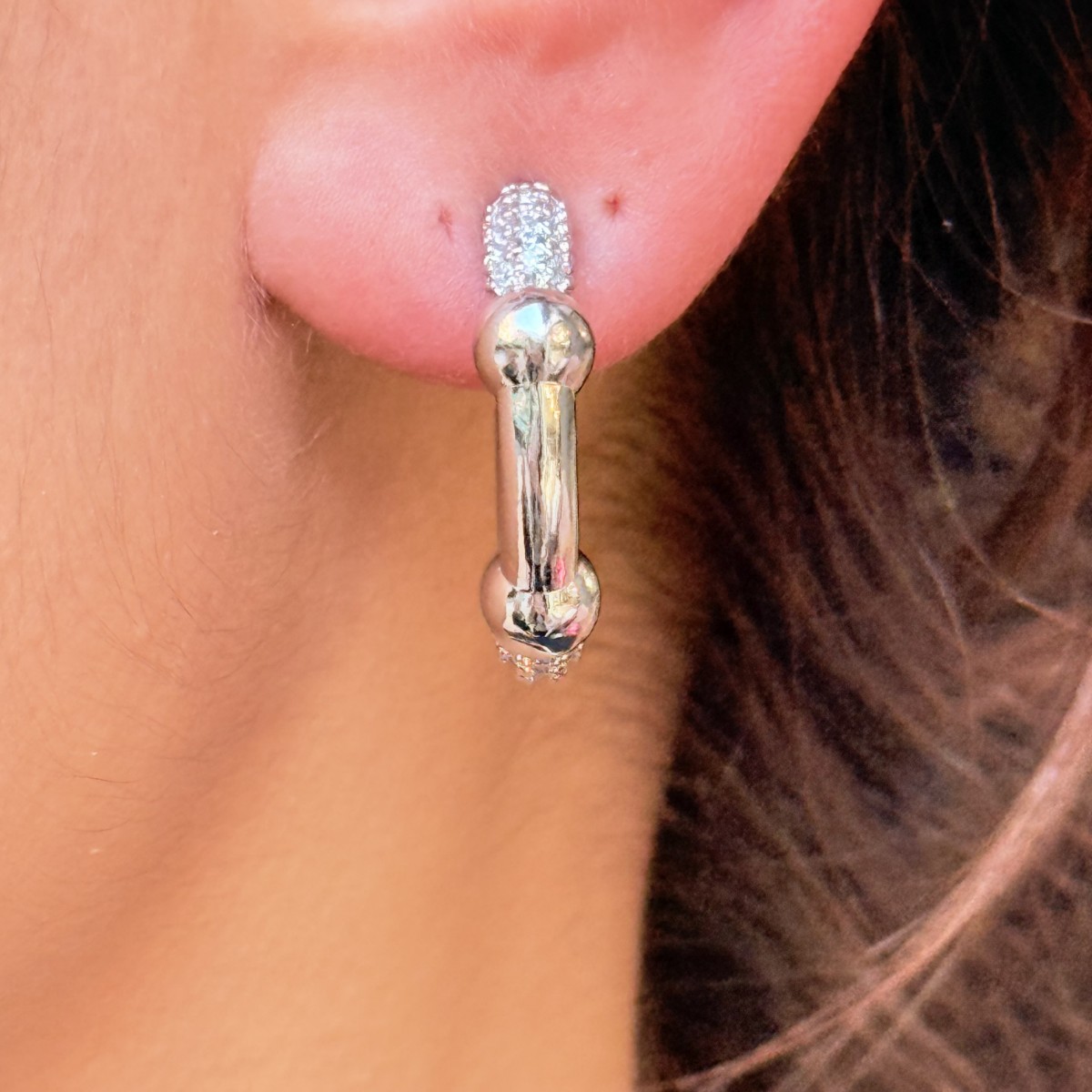 Pırlanta detaylı parlak gümüş tasarım, güçlü ve şık bir halka formu.