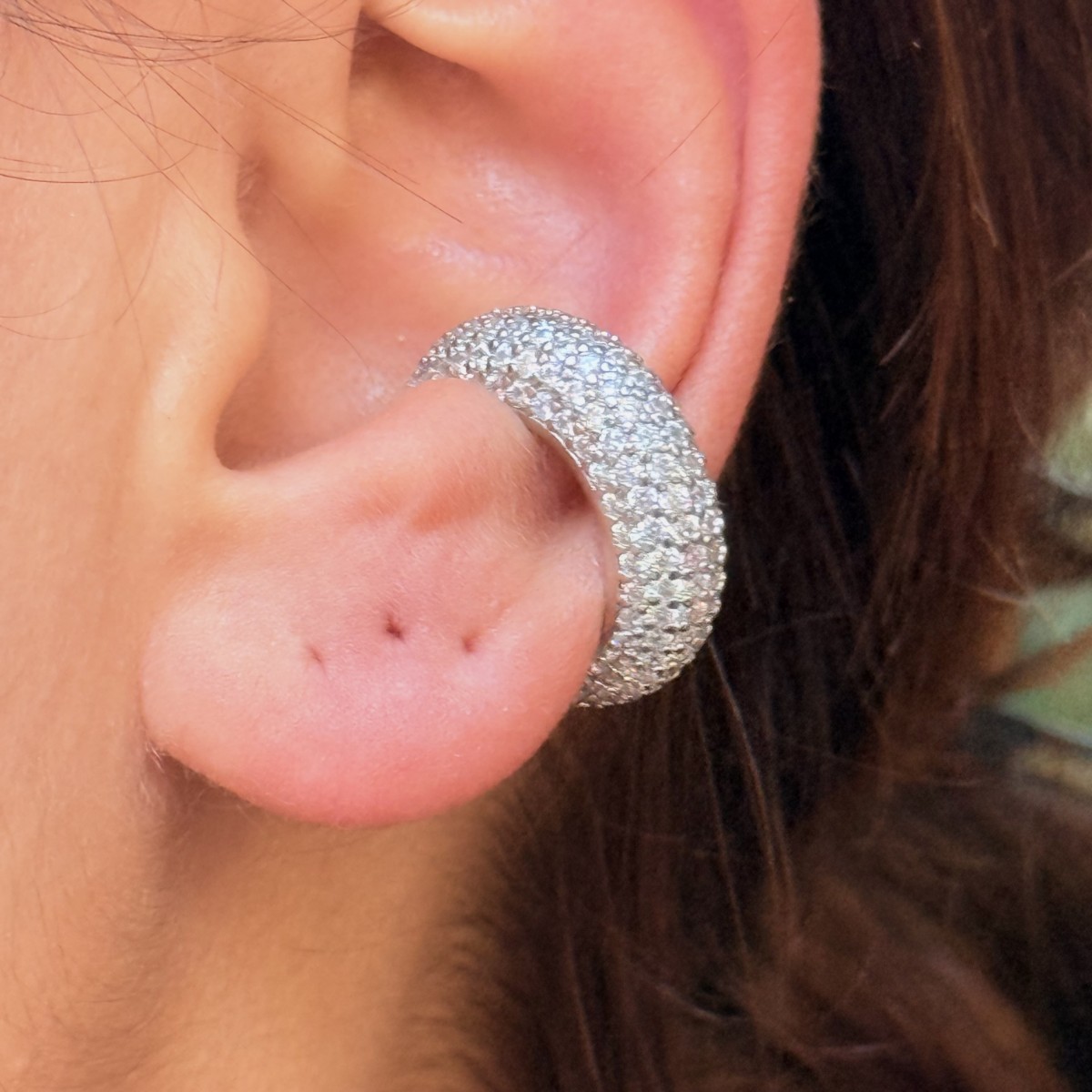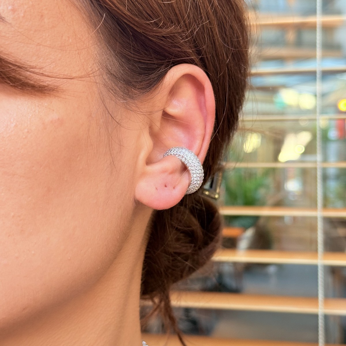 Tüm yüzeyi taşlarla kaplı kalın halka tasarım, cesur ve göz alıcı bir duruş sergiler.