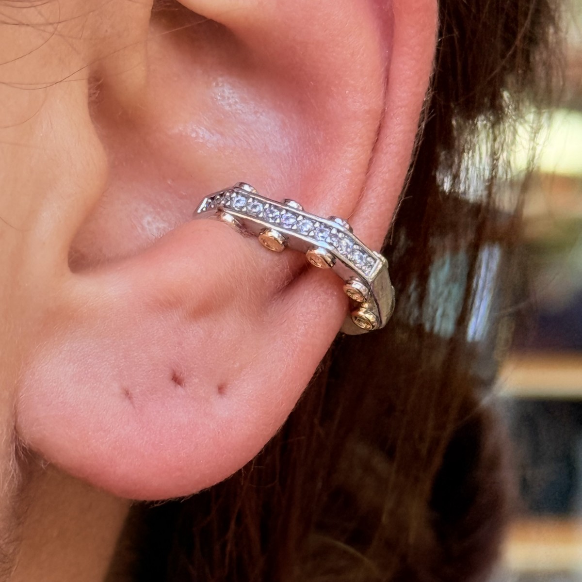 Altın ve gümüşün birleştiği retro desenli tasarım, sıra dışı bir stil isteyenler için. Hem bohem hem de modern kombinlere uyum sağlar.