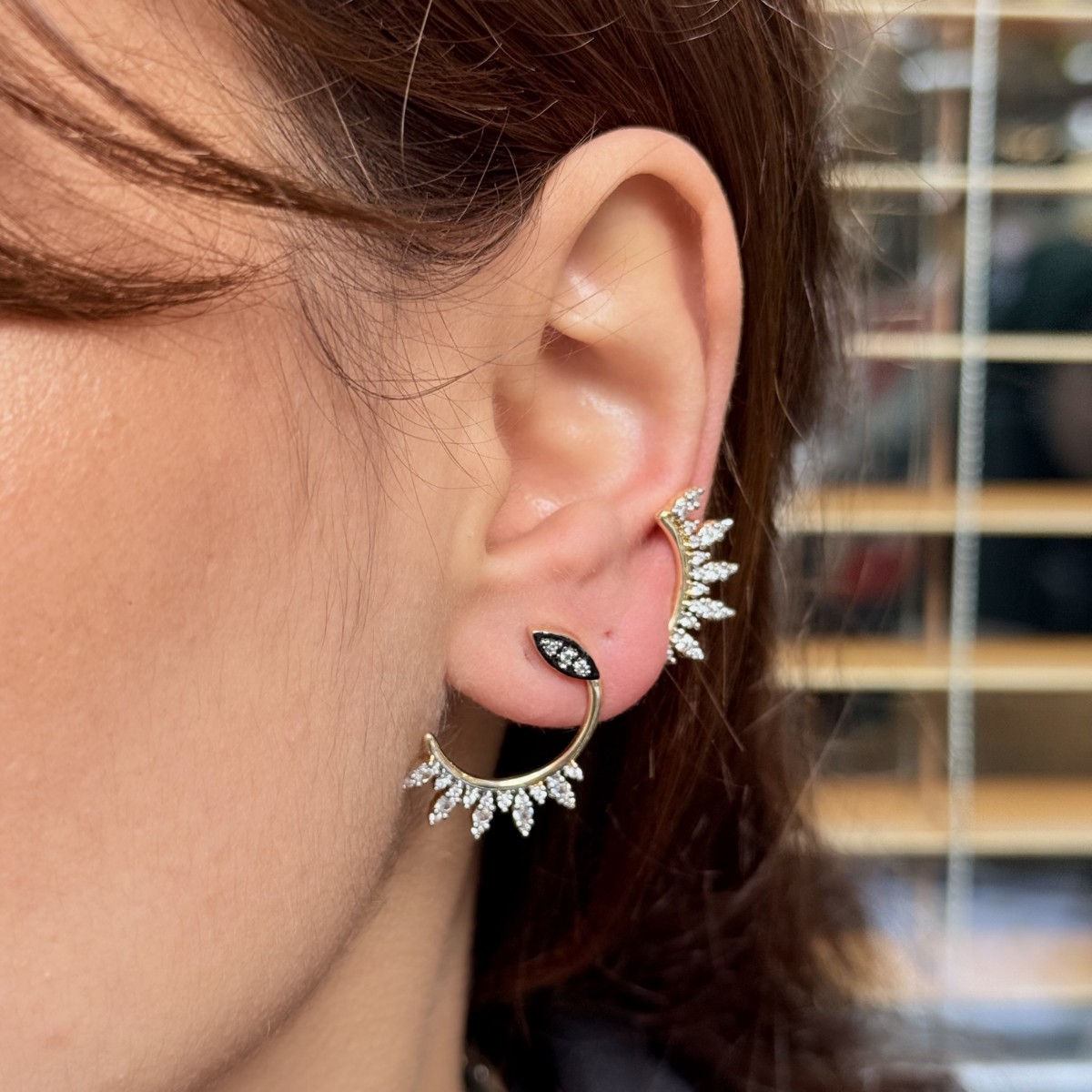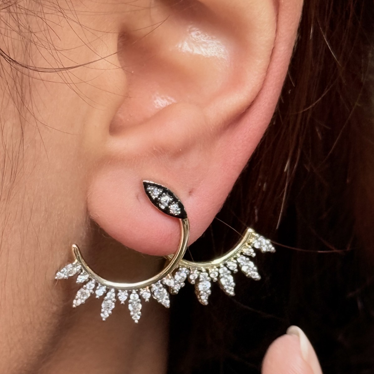 Siyah Detaylı Yarım Halo Küpe