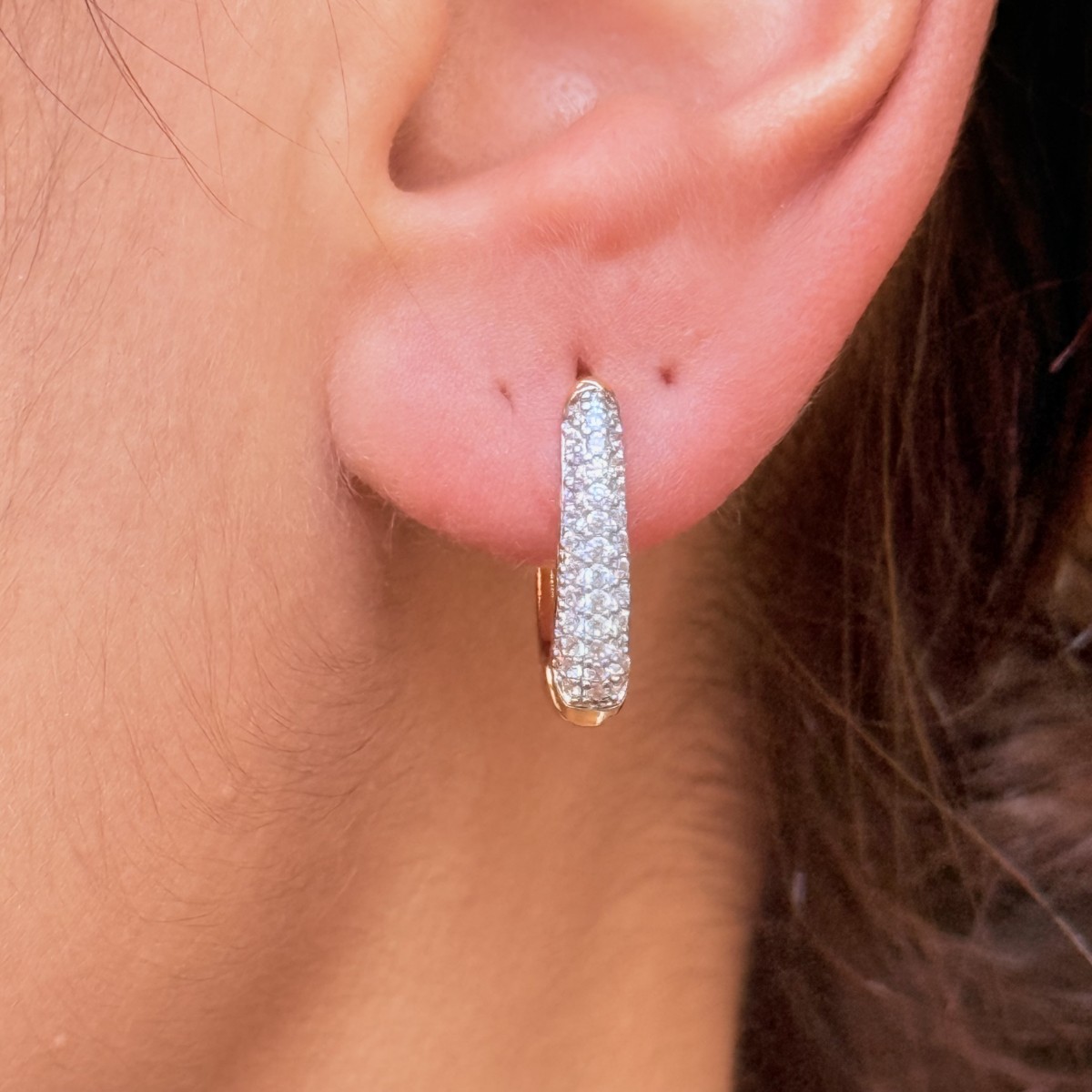 Taşlı İnce Oval Küpe