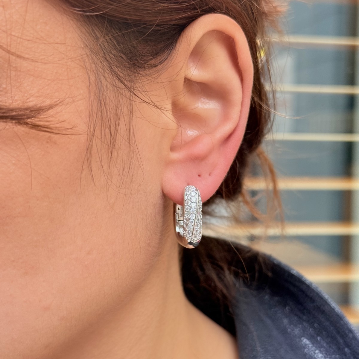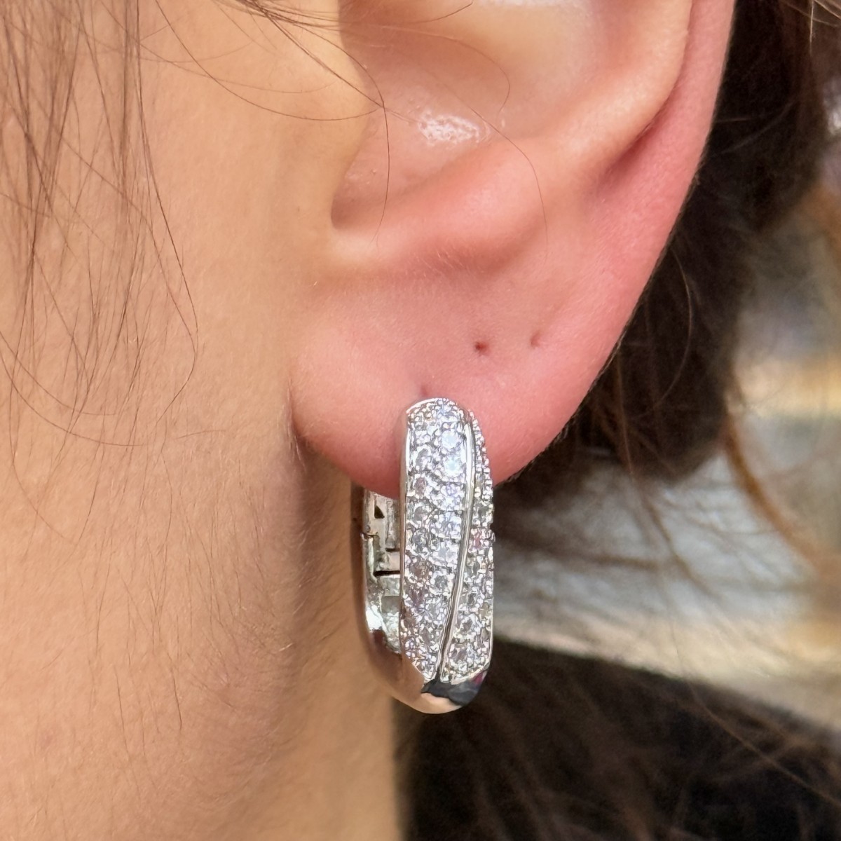 Taşlı Gümüş Halka Küpe
