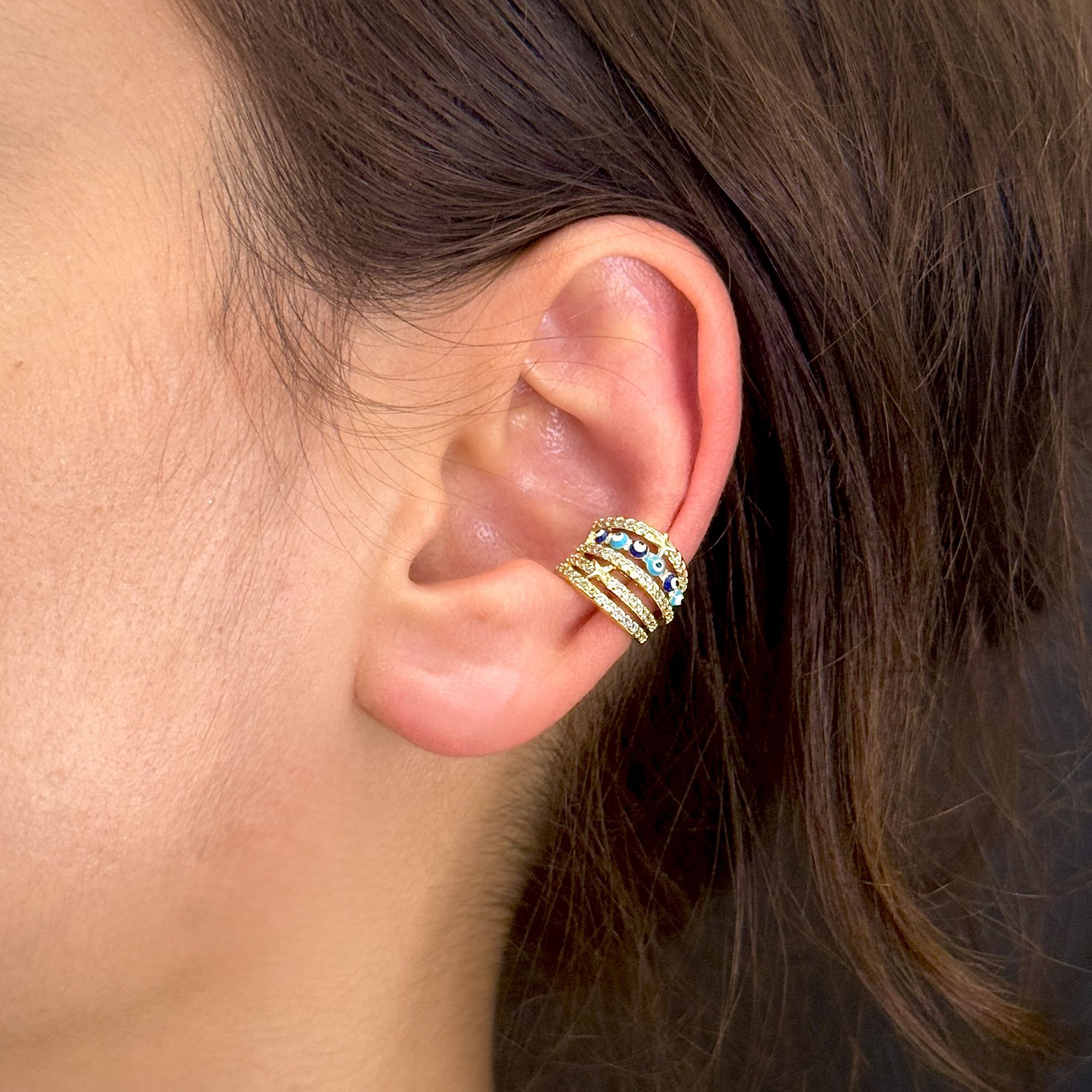 Taşlı Gold Nazar Boncuklu Kıkırdak