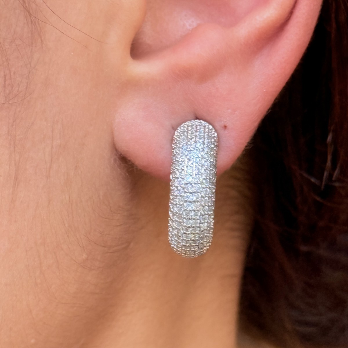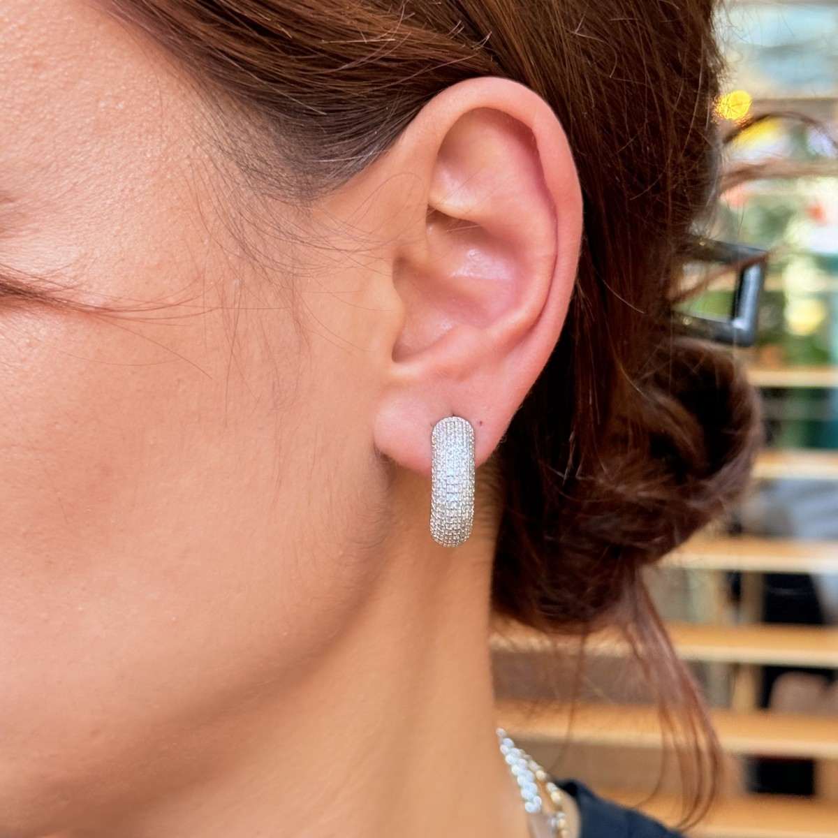 Kulak memesini tamamen saran taşlı yüzeyiyle şıklığı zirveye taşıyan bu küpe, sade kombinleri bile anında lüks bir görünüme dönüştürüyor. Hem gündüz hem gece için zamansız bir tercih.