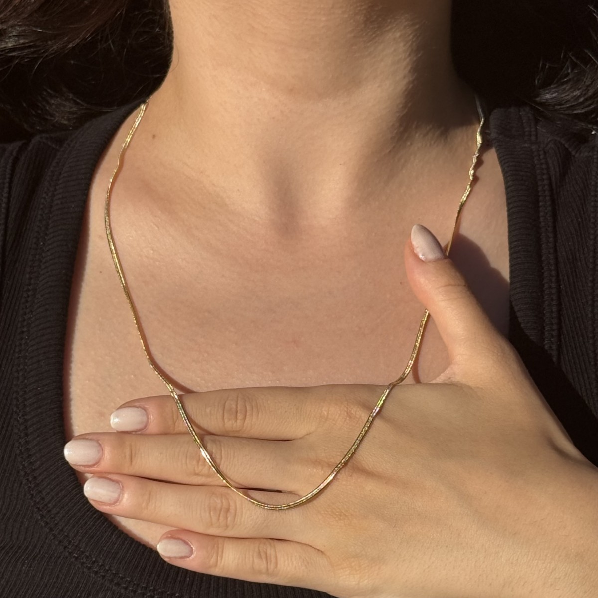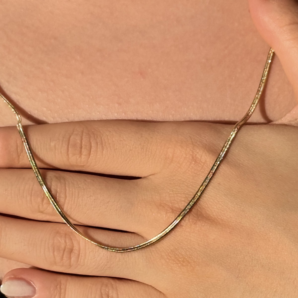 İnce ama gövdeli ve yassı yapısıyla boyunda daha tok bir duruş sergiler. Halkalar belli olmaz, düz ve akıcı bir görünüm verir. Daha modern ve iddialı bir modeldir, sade kombinlerde tek başına bile dikkat çeker.