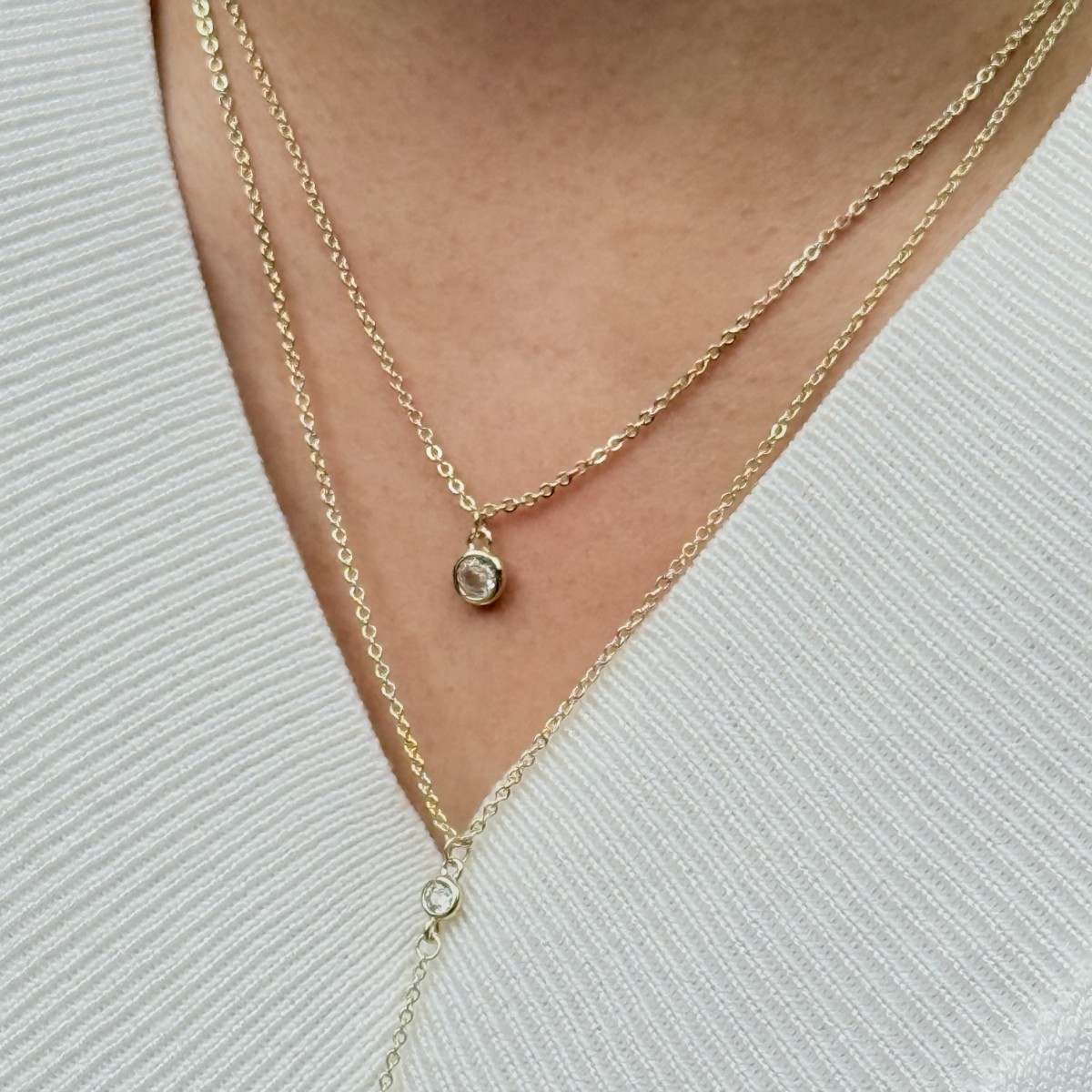 Yuvarlak Taşlı Minimal Katmanlı Kolye