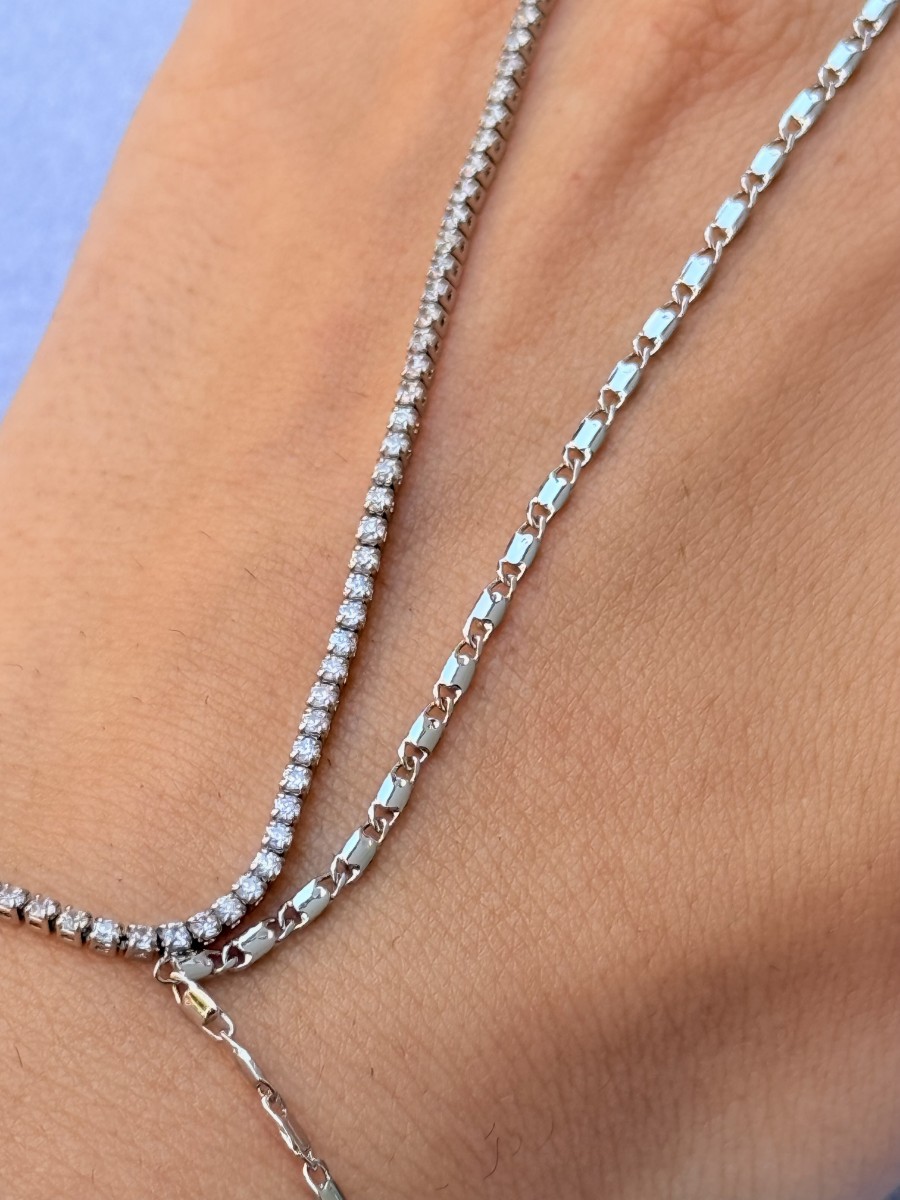İnce taş detaylı zincir ve parlak kare kesim motiflerin birleştiği bu şahmeran, günlük şıklığınıza modern bir dokunuş katıyor.
