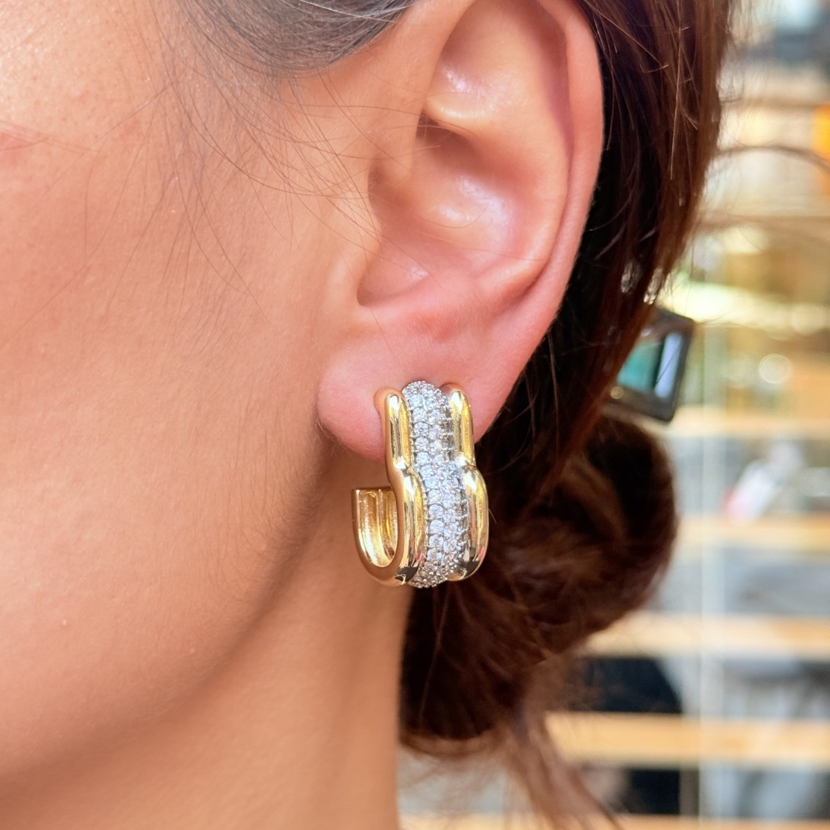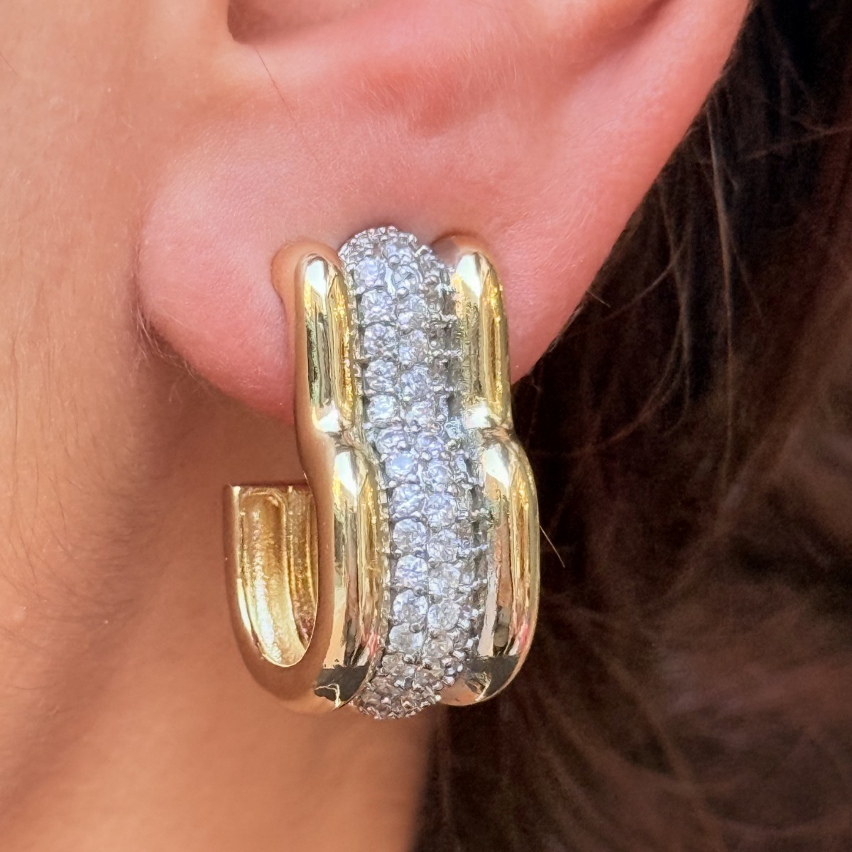 Altın ve pırlanta taşlı zincir formu, güçlü bir modern tasarım oluşturuyor.